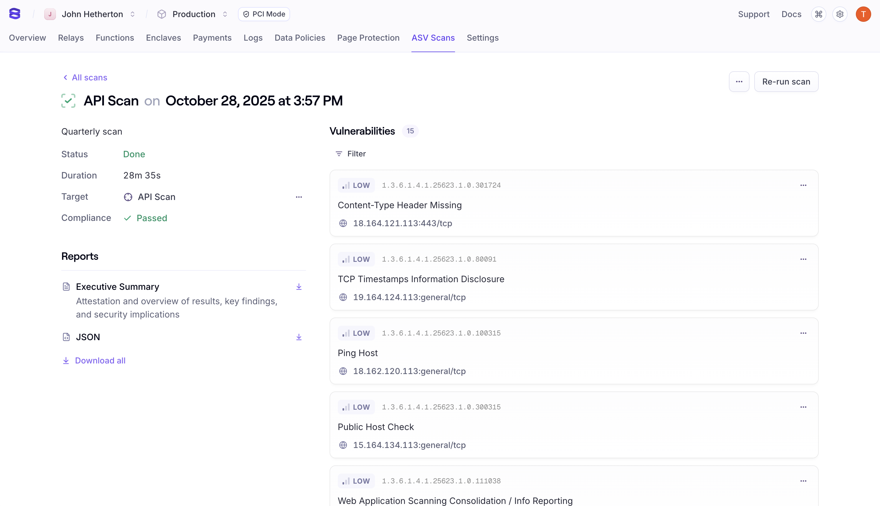 While other ASV tools scatter data across tabs and PDFs, Evervault brings full context to a single, modern dashboard — making scans quick to review and easy to act on.